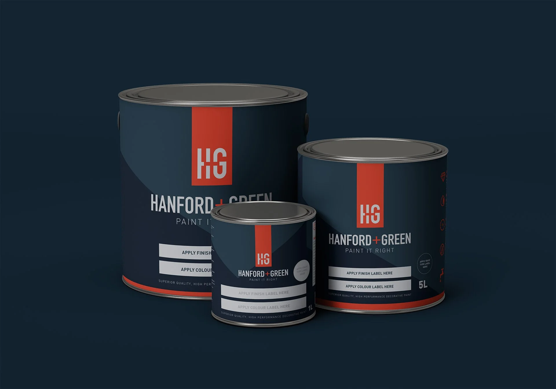 Hanford + Green produce high end performance paint for commercial businesses. They approached me for a brand new visual identity and supporting materials including packaging.
